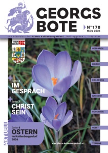 www.pfarre-kahlenbergerdorf.at Seite 7 CHRIST SEIN Seite 2 IM GESPRÄCH GESPRÄCH KIRCHE EINLADUNG NACHRUF RÜCKBLICK GEBET TERMINE Seite 4 OSTERN im Kahlenbergerdorf 2026 AKTUELL Das Pfarrblatt der Pfarre Kahlenbergerdorf, Zwillinggasse 2, 1190 Wien GEORGS BOTE N°170 März 2026